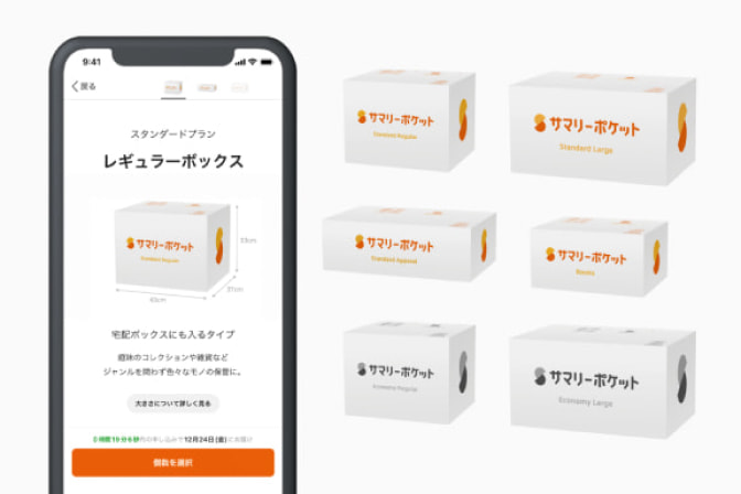 まずは当サイトまたはアプリから、専用ボックスをお取り寄せください。撮影あり/なしなどの管理方法の違いと、形状・大きさの違いで、全6種類のボックスをご用意しています。