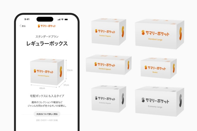 まずは当サイトまたはアプリから、専用ボックスをお取り寄せください。撮影あり/なしなどの管理方法の違いと、形状・大きさの違いで、全6種類のボックスをご用意しています。