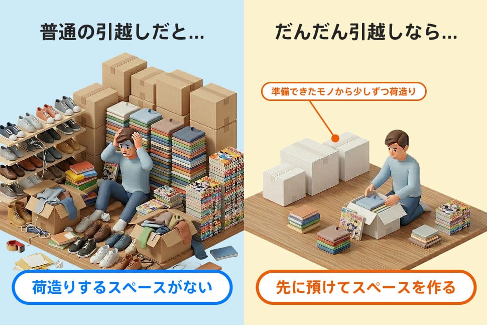 ・引越し前から少しずつ預ける ・手元の荷物を減らしながら進める |